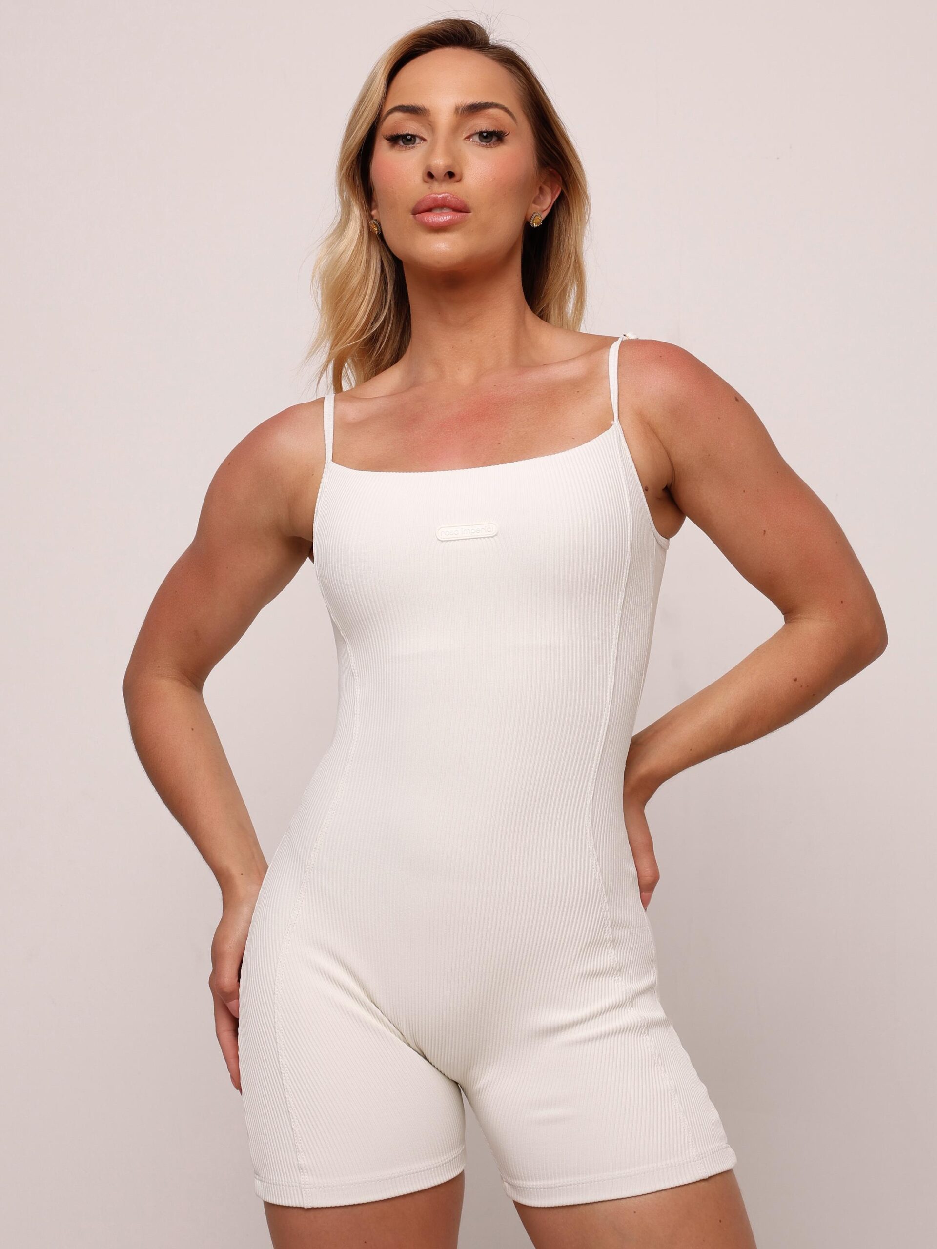 O Macaquinho Honey Ribbed é um modelo de alcinha com regulagem e com as costas mais fechadas.