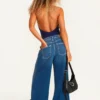 Nas costas possui um decote frente única.