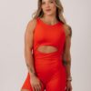 Nas costas, o destaque fica para as alças largas, além de possuir uma tira com regulagem para mais segurança na hora do treino.