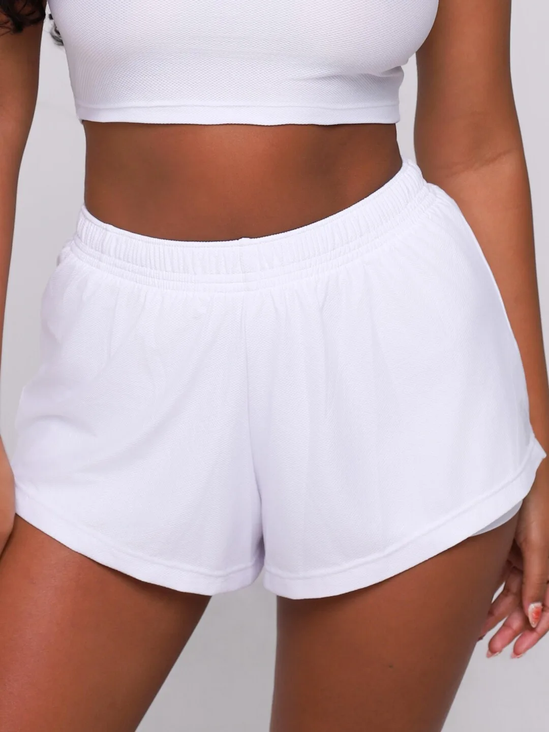 Tecido Dry trabalhado com efeito de pequenos favos e leve transparência. Com toque macio, conforto e boa respirabilidade para a pele.