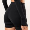 Detalhe destaque no barrado com leve compressão que deixa o comprimento no lugar durante o movimento.