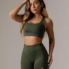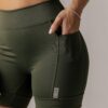 Detalhe destaque no barrado com leve compressão que deixa o comprimento no lugar durante o movimento.